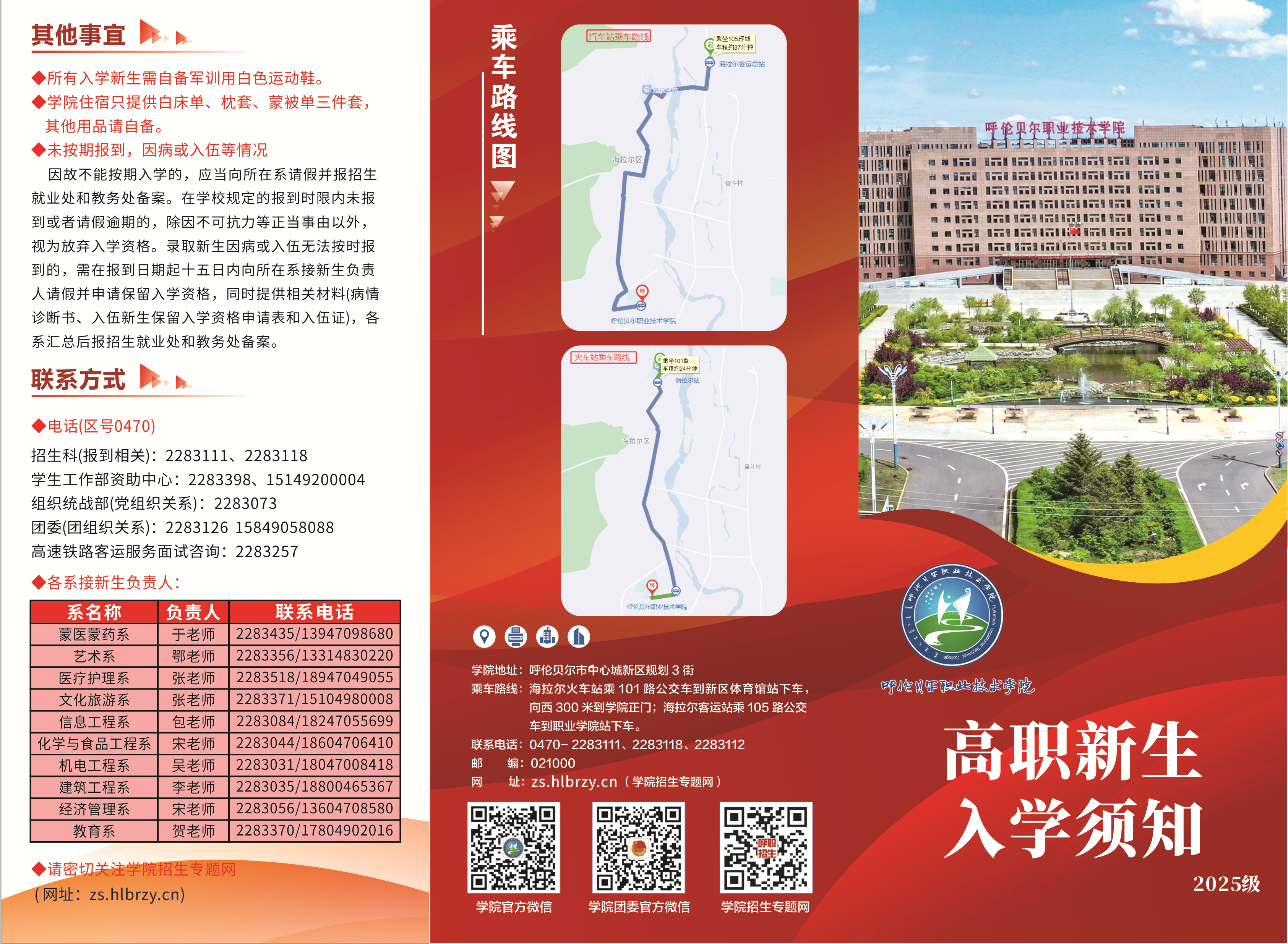 2025年呼伦贝尔职业技术学院高职新生入学须知